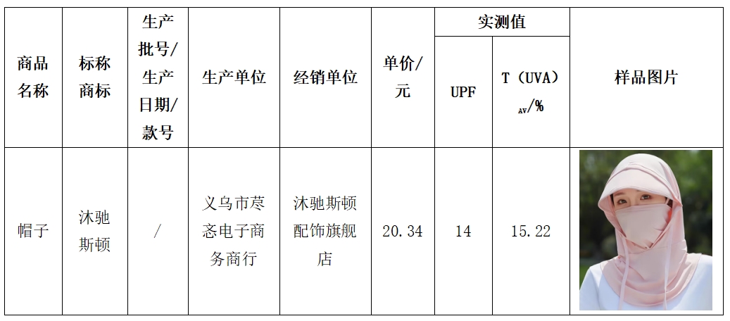 - 黑龙江省消协防晒面罩比较试验结果显示:沐驰斯顿样品不具备防紫外线功能