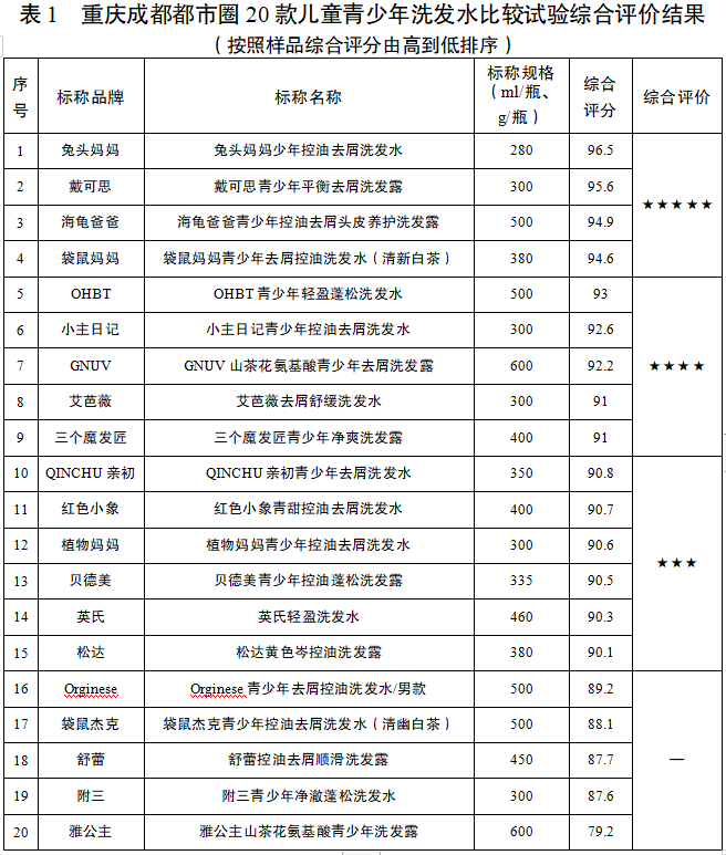 - 消委会发布青少年洗发水比较试验报告:20款样品均符合标准要求