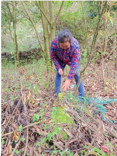 图:彭水县联合乡镇护林人员李芬(化名)正在清理枯枝