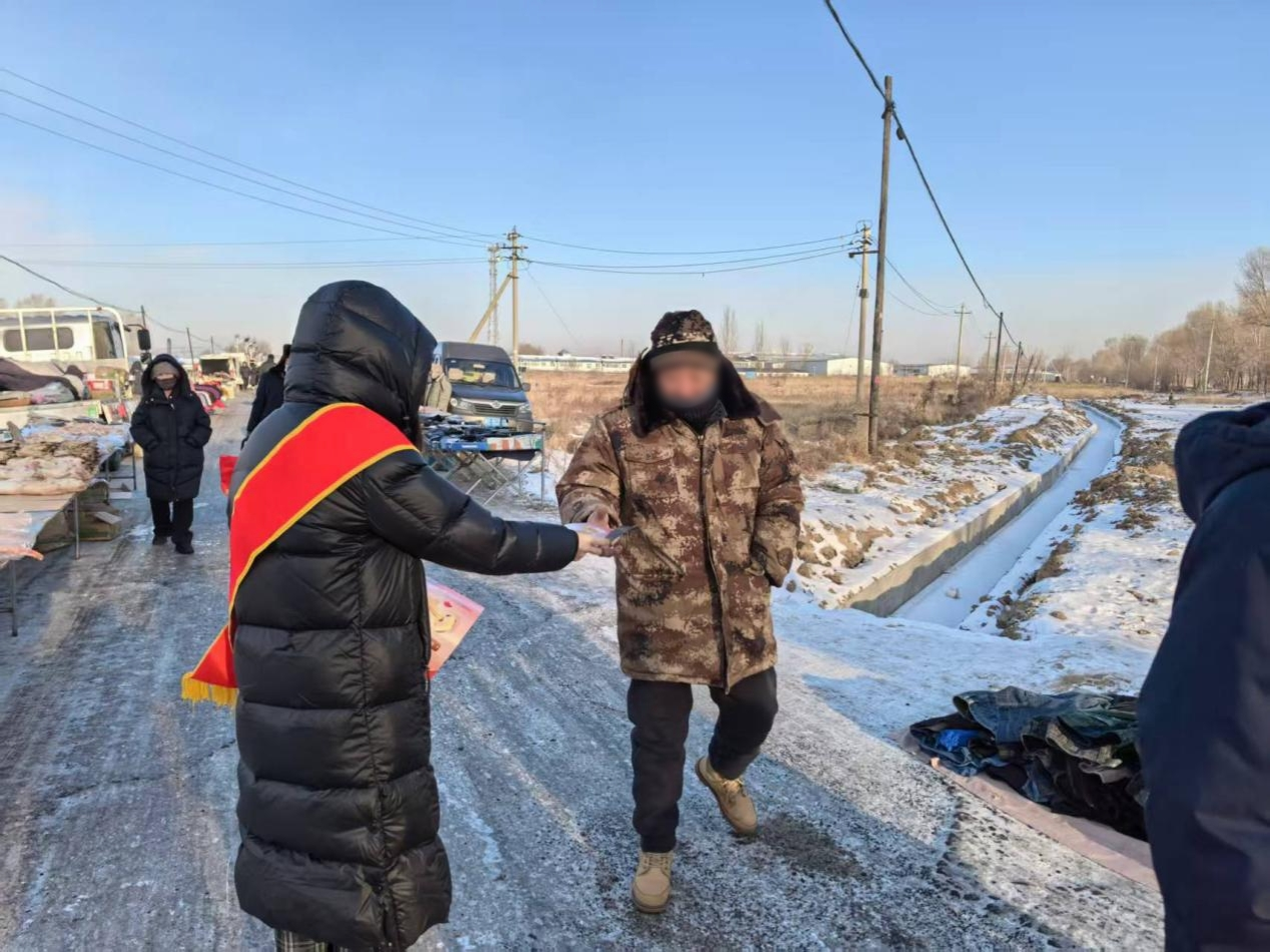 近日,太平人寿大庆中心支公司宣传队伍顶着凛冽寒风,深入龙凤区向阳村大集开展防范非法金融专项宣传活动,以实际行动守护村民“钱袋子”,彰显金融企业的责任与担当。