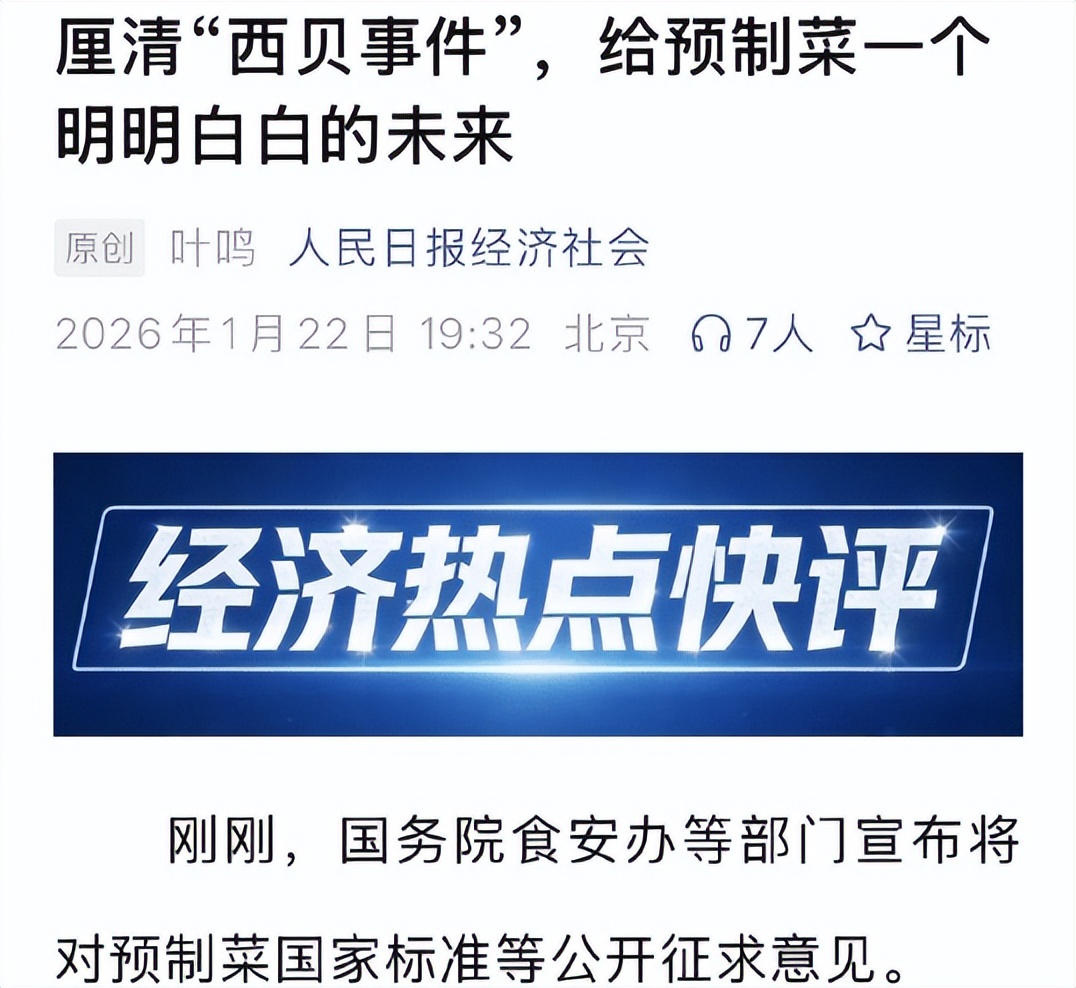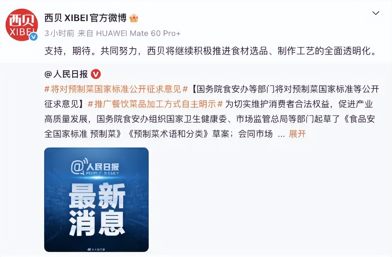 预制菜国家标准将公开征求意见 西贝发文回应 人民日报连发四问