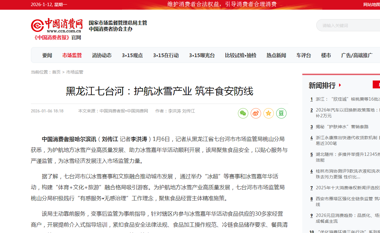 黑龙江七台河:护航冰雪产业 筑牢食安防线