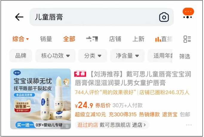 近日,郭晶晶、刘涛代言的婴童护理品牌“戴可思”被曝一款儿童唇膏宣称为“食品级润唇膏”,涉嫌违反《儿童化妆品监督管理规定》。