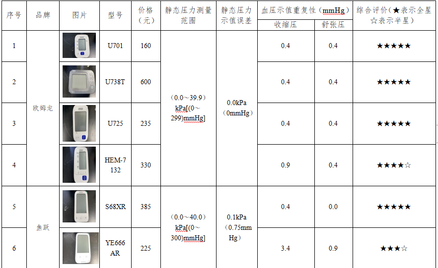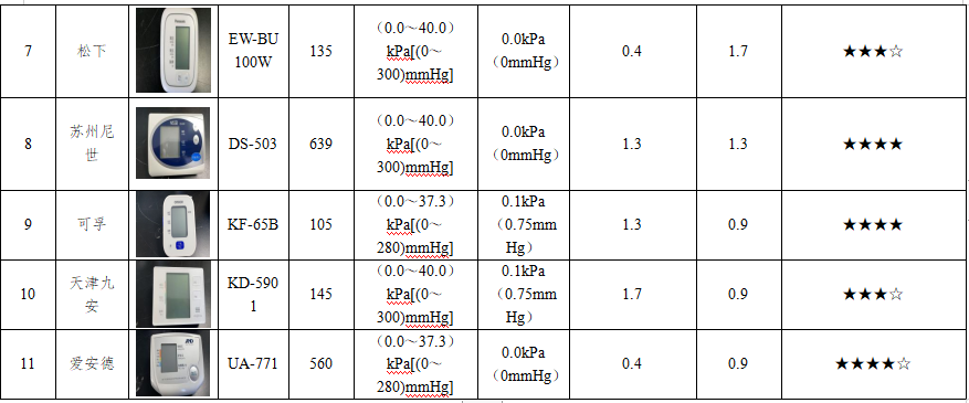 11款臂式电子血压计测评结果出炉 4款样品获五星评价