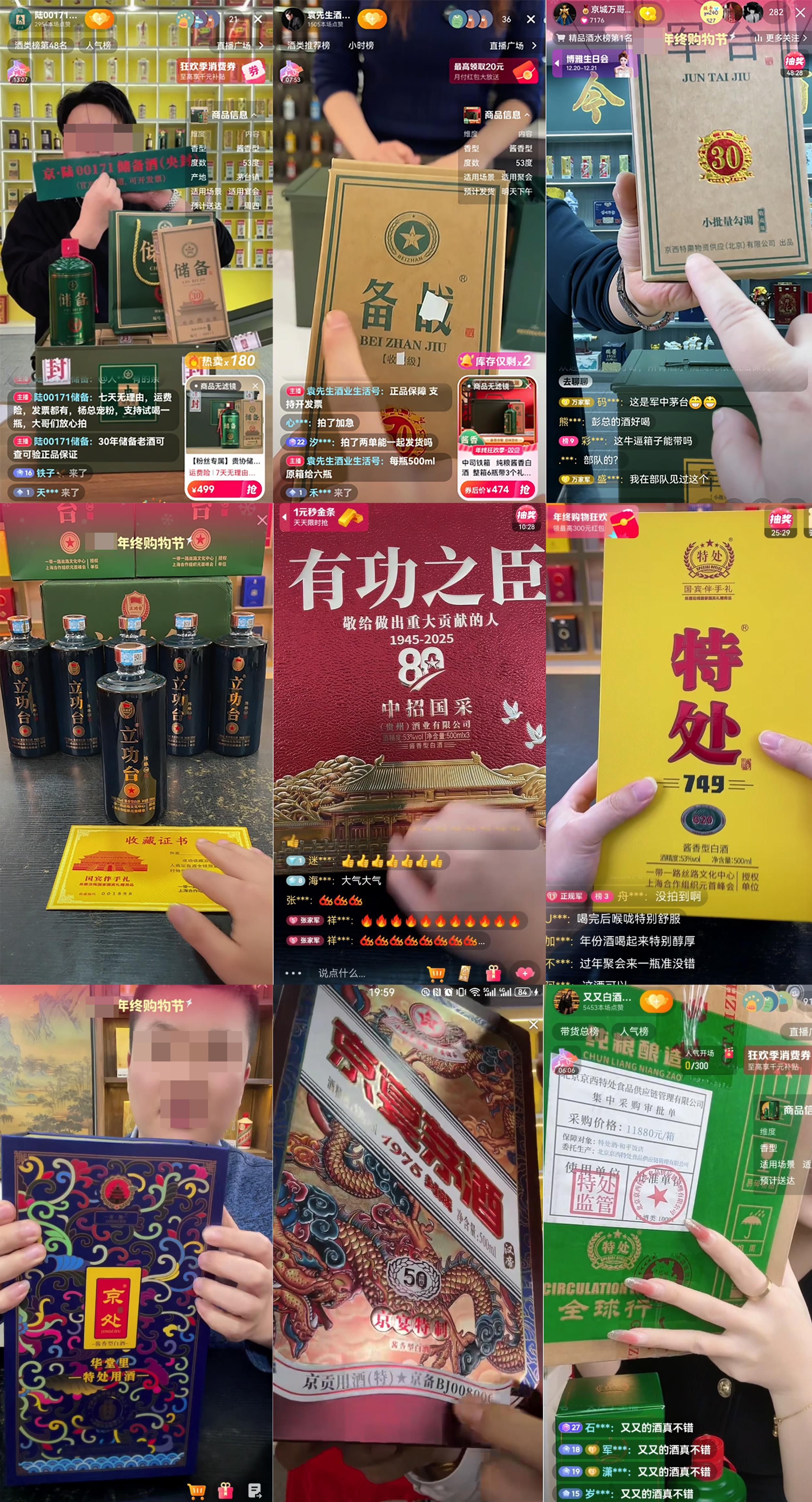 此外,记者还发现部分直播间以“特殊渠道才能搞到的酒”为旗号,销售“备战酒”“储备酒”“特处酒”“军台酒”等,主播均暗示这些酒和军队或政府部门相关。