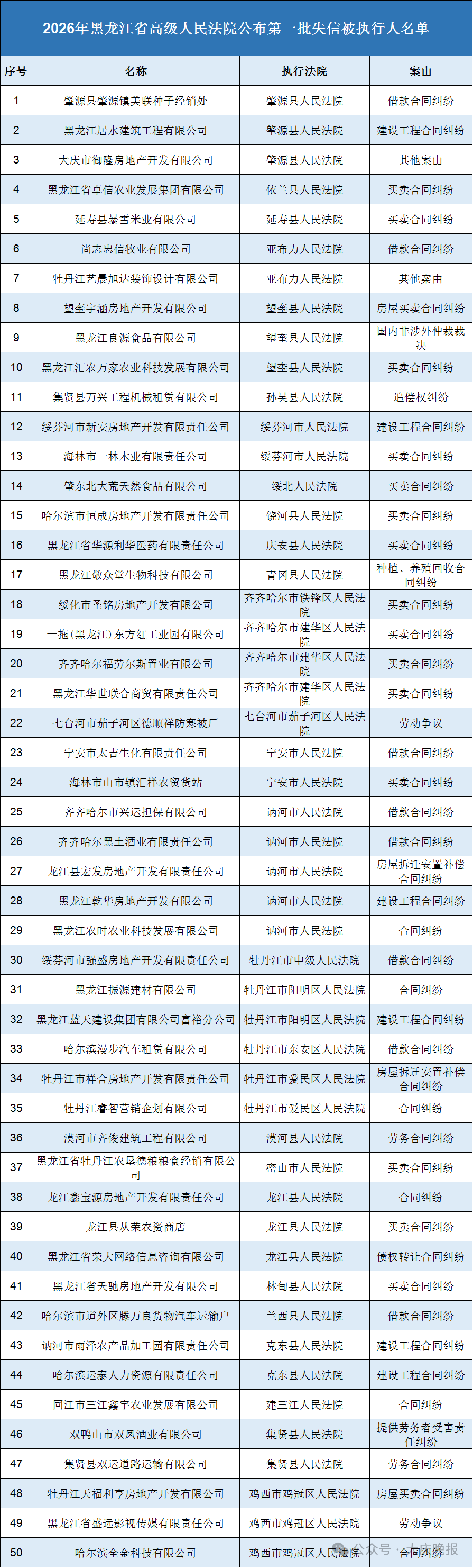 失信大曝光! 2026年黑龙江高院 首批失信被执行人名单 来了! 本次失信曝光台 共曝光112家失信企业 哪些企业被曝光? 一起来看看吧