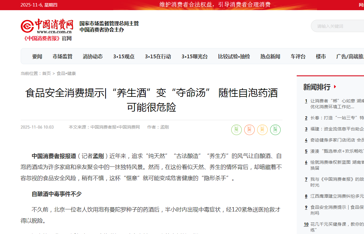 食品安全消费提示|“养生酒”变“夺命汤” 随性自泡药酒可能很危险