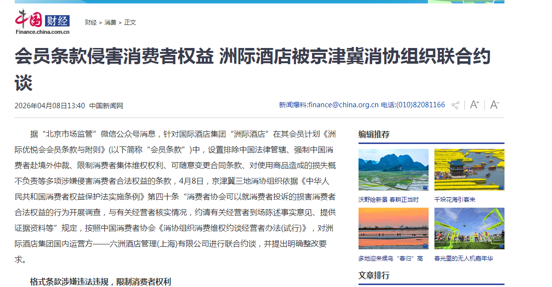 会员条款侵害消费者权益 洲际酒店被京津冀消协组织联合约谈